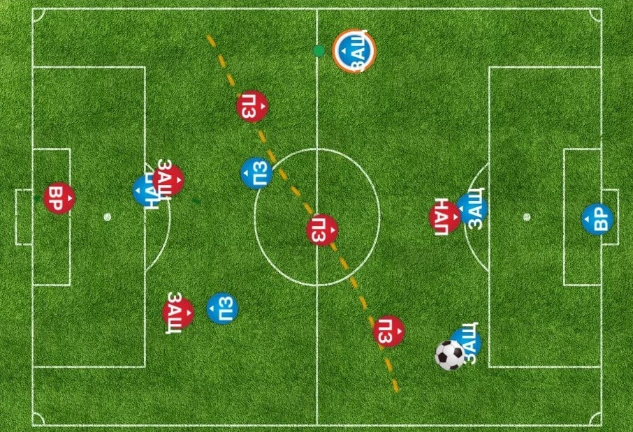 - при подключении крайних защитников один из центральных хавов должен страховать фланг